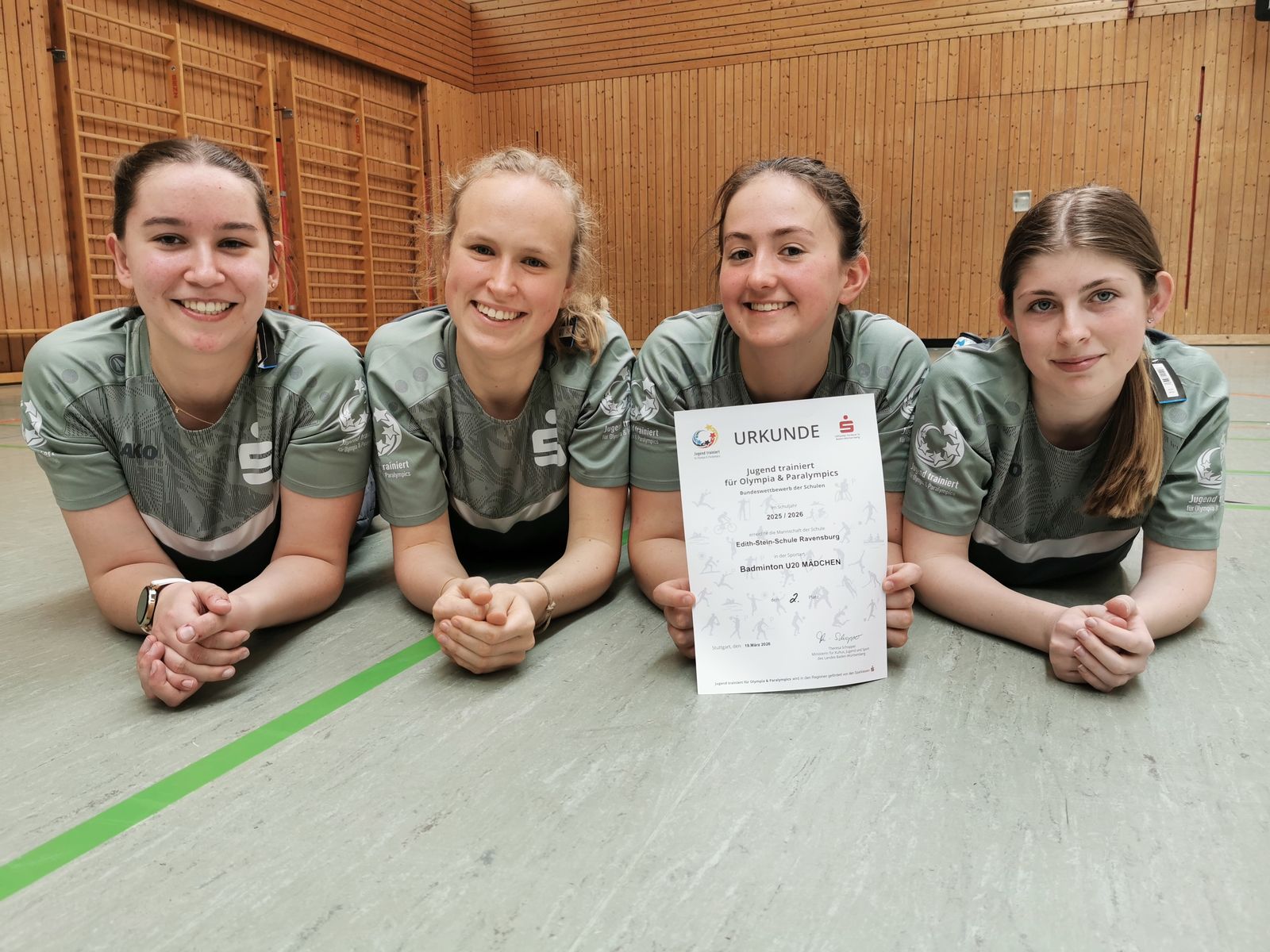 Bei Jugend trainiert für Olympia ist in der Kategorie U20 Mädchen den Schülerinnen der Edith-Stein-Schule ein fantastisches Ergebnis gelungen: Sie haben den 2. Platz im Badminton erreicht. Im Landesfinale, an dem jeweils die Siegerinnen der vier Regierungspräsidien teilnehmen, waren die Schülerinnen des beruflichen Gymnasiums Madalena Basalone, Olivia Jaehn, Antonia Mütz und Alina Nold mit großem Engagement und Spaß dabei, mussten sich aber dem Sieger aus Tauberbischofsheim leider geschlagen geben. Wir gratulieren den Schülerinnen zu dieser großartigen sportlichen Leistung!